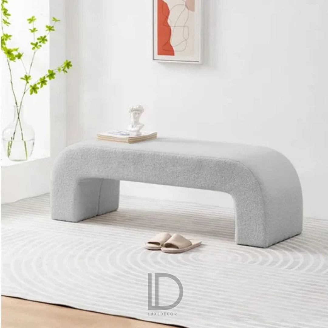 Transformez votre espace avec ce banc en bouclette, alliant confort, style et fonctionnalité.