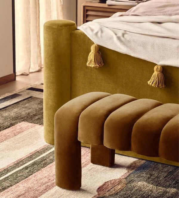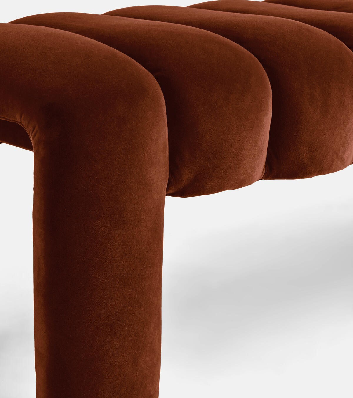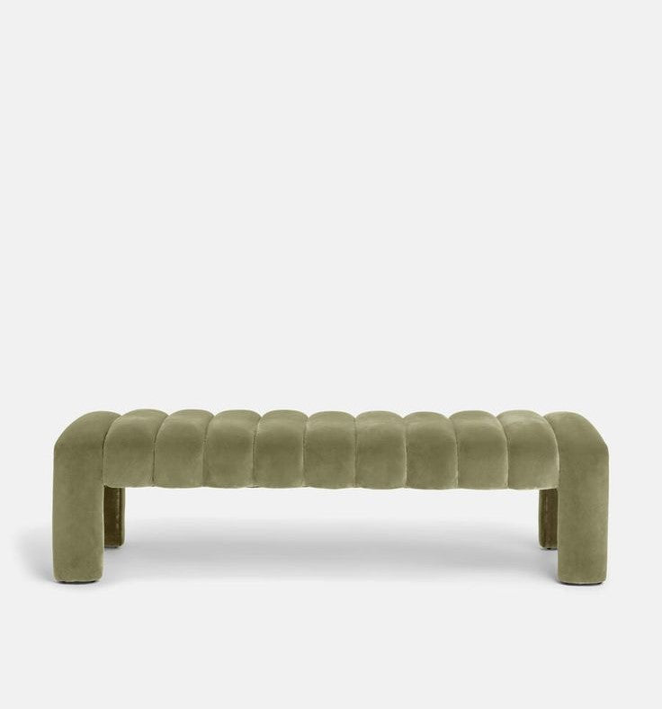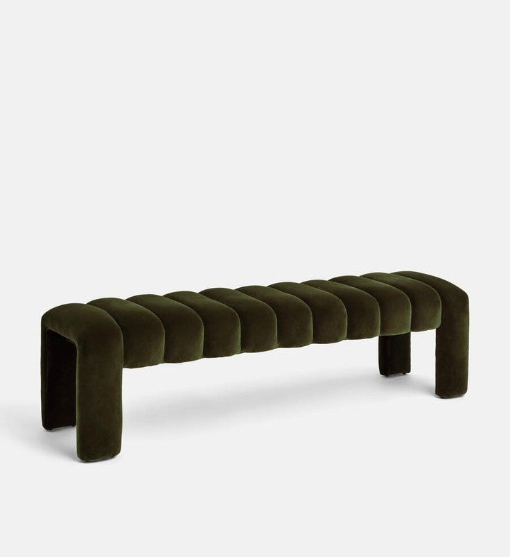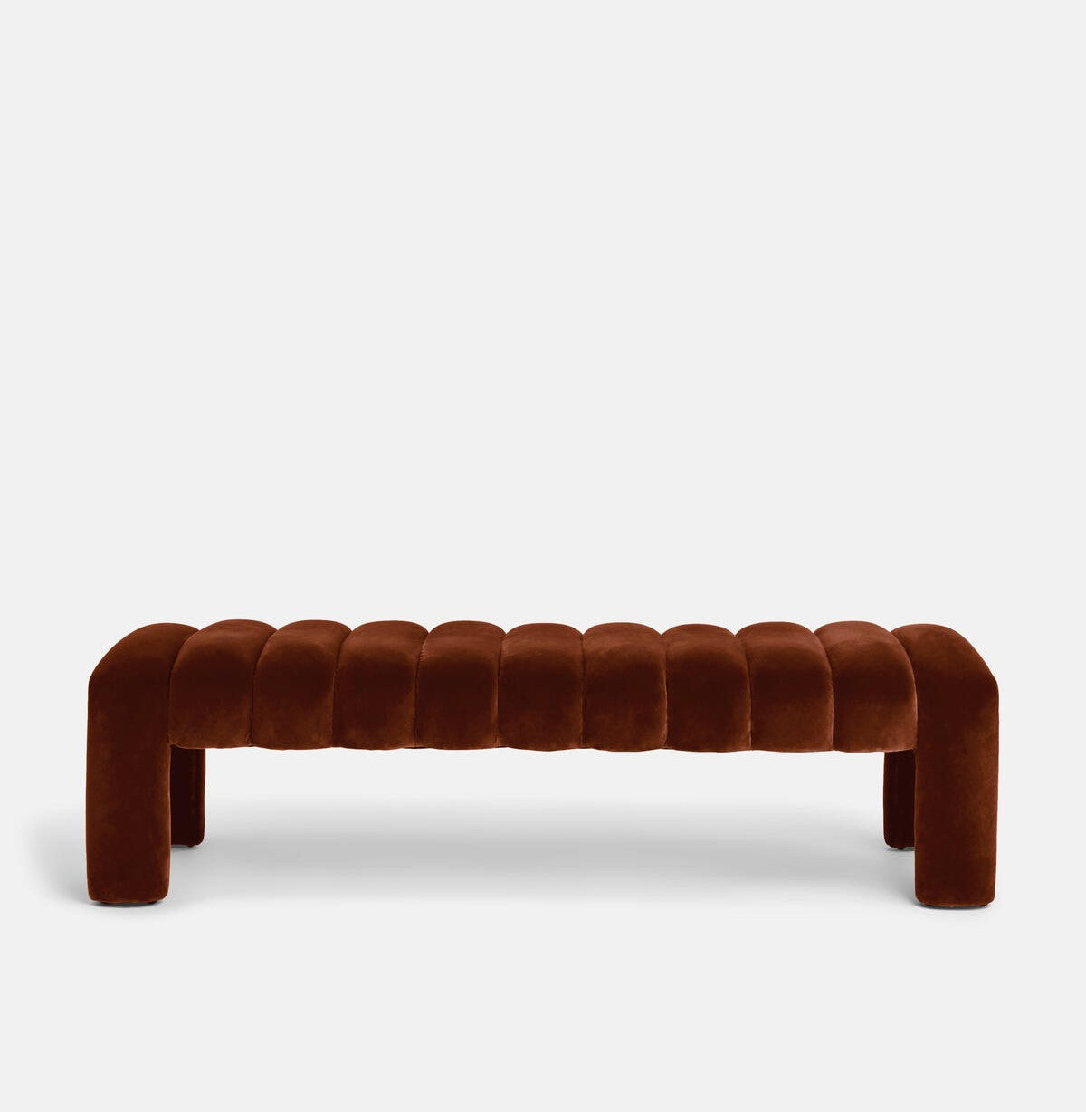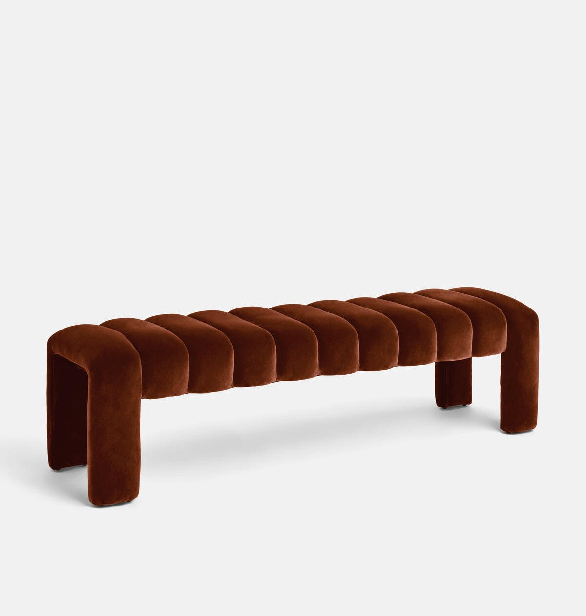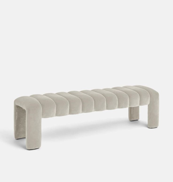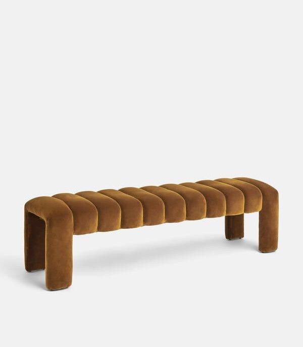 Notre banc Willis ajoute une touche de glamour d'inspiration vintage à n'importe quel intérieur avec des détails de siège canalisés et un revêtement en velours doux pour une finition texturée.