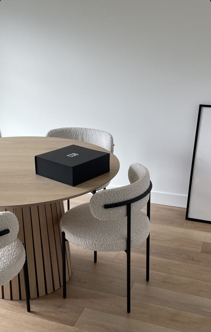 Robustes et durables, conçues avec une structure en métal noir mat. Dossier incurvé pour un soutien ergonomique, et siège rond rembourré avec du tissu bouclette pour un confort optimal.