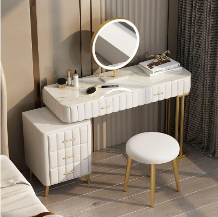 Coiffeuse Moderne 5 Tiroirs + Tabouret et Miroir
