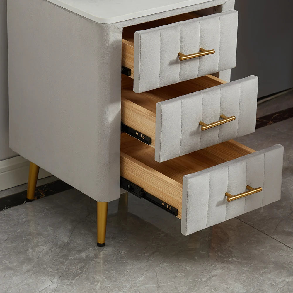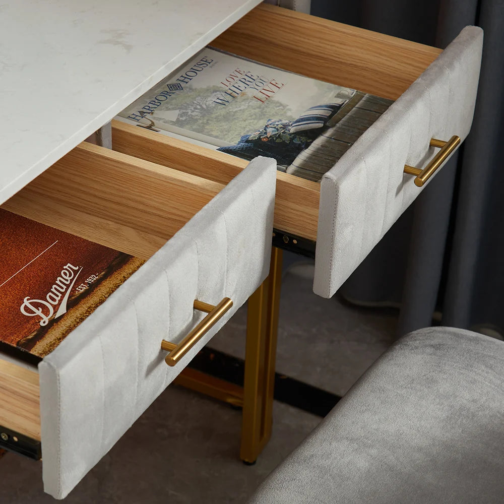 Ajoutez une touche de raffinement à votre espace avec cette coiffeuse moderne en velours blanc anti-taches.