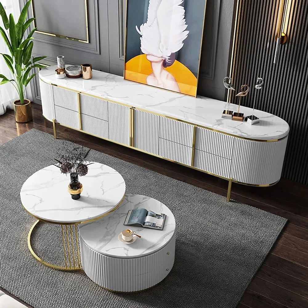 Élégant et gracieux, ce meuble TV et Table Basse présente grandeur et classe, ce qui en fait un ajout parfait à n'importe quelle pièce de votre maison.