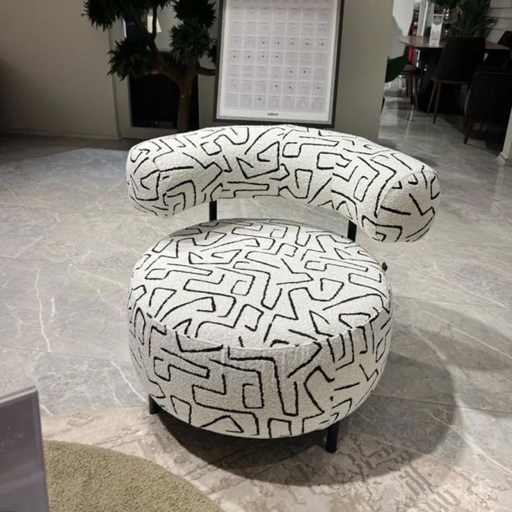 Son assise généreuse et son dossier incurvé offrent un confort exceptionnel, tandis que son tissu bouclette graphique apporte une touche artistique et tendance à votre intérieur.