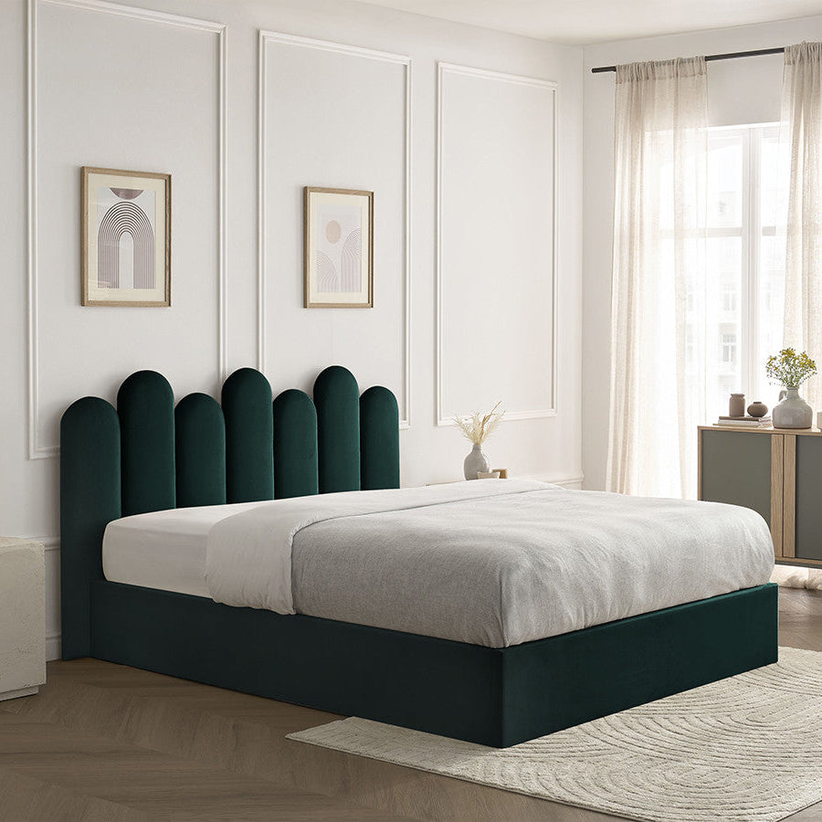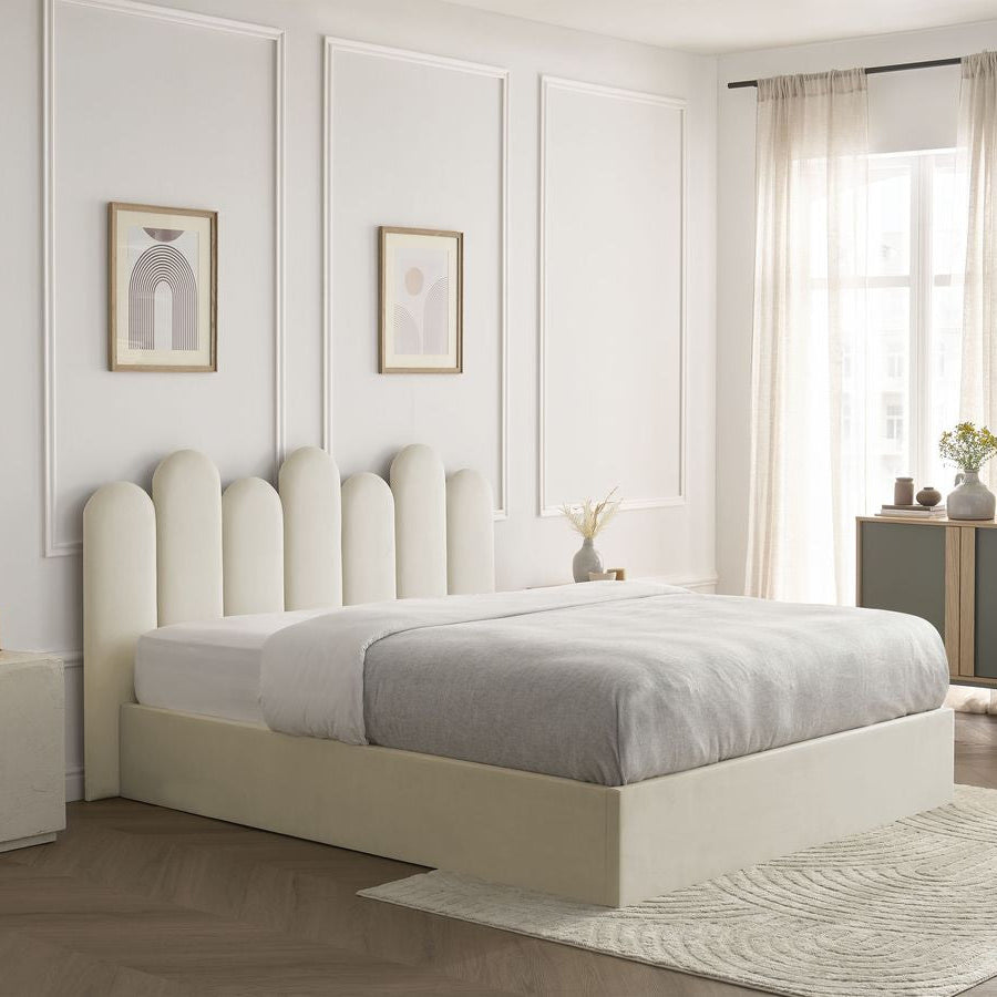 Sa tête de lit en forme d’arcs donne un style unique et artistique à votre chambre, tout en apportant une touche de douceur et de modernité.
