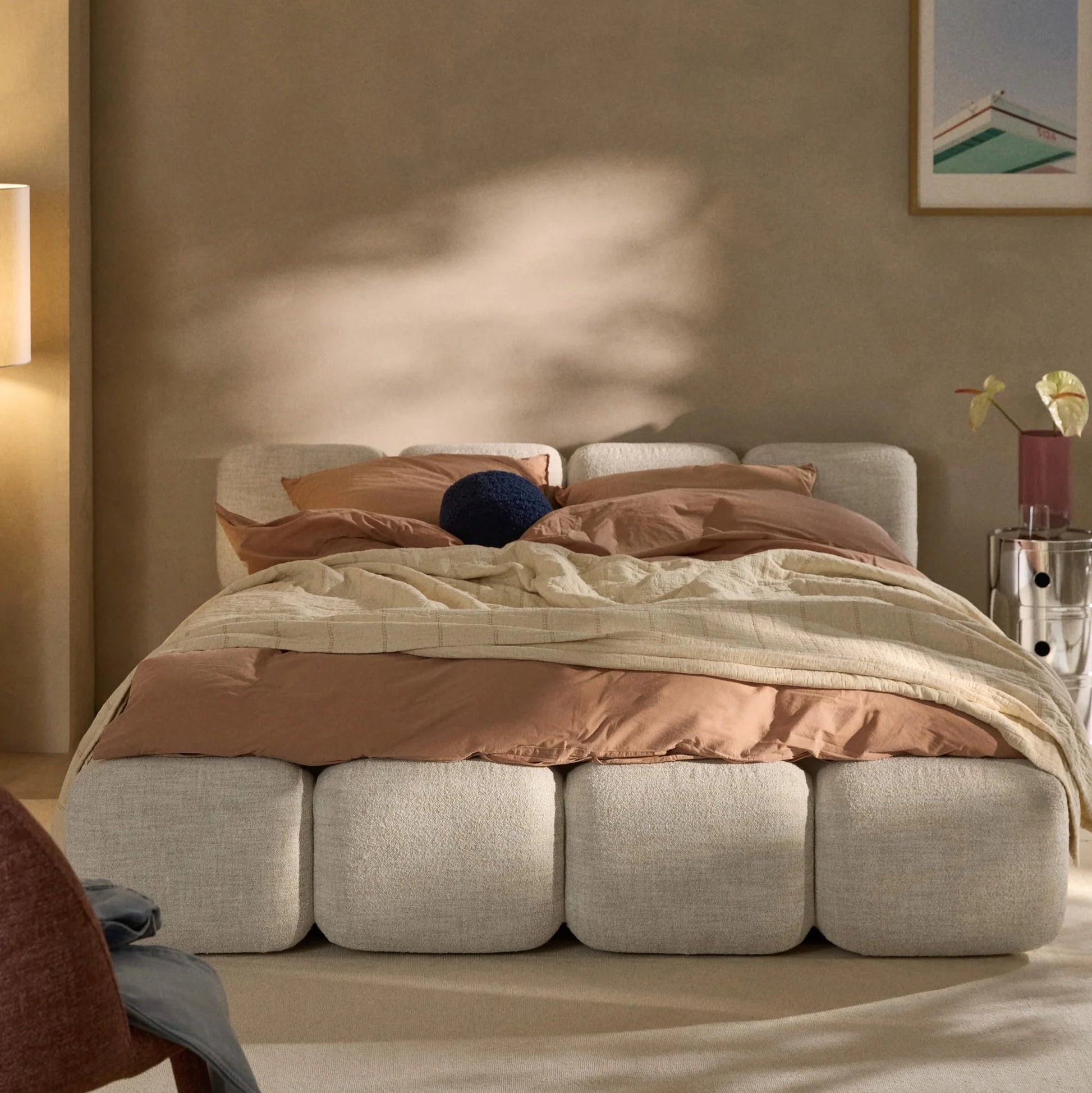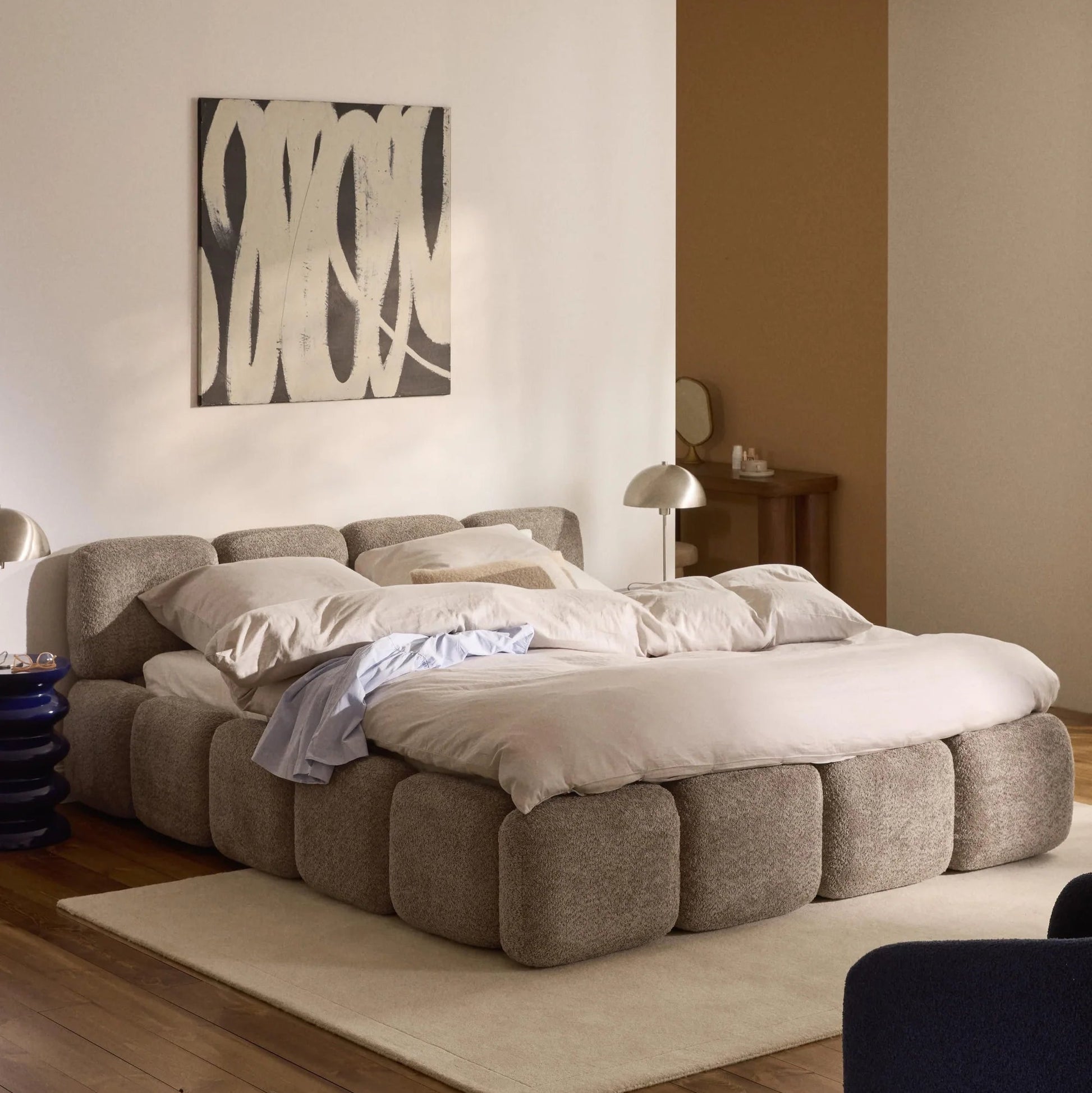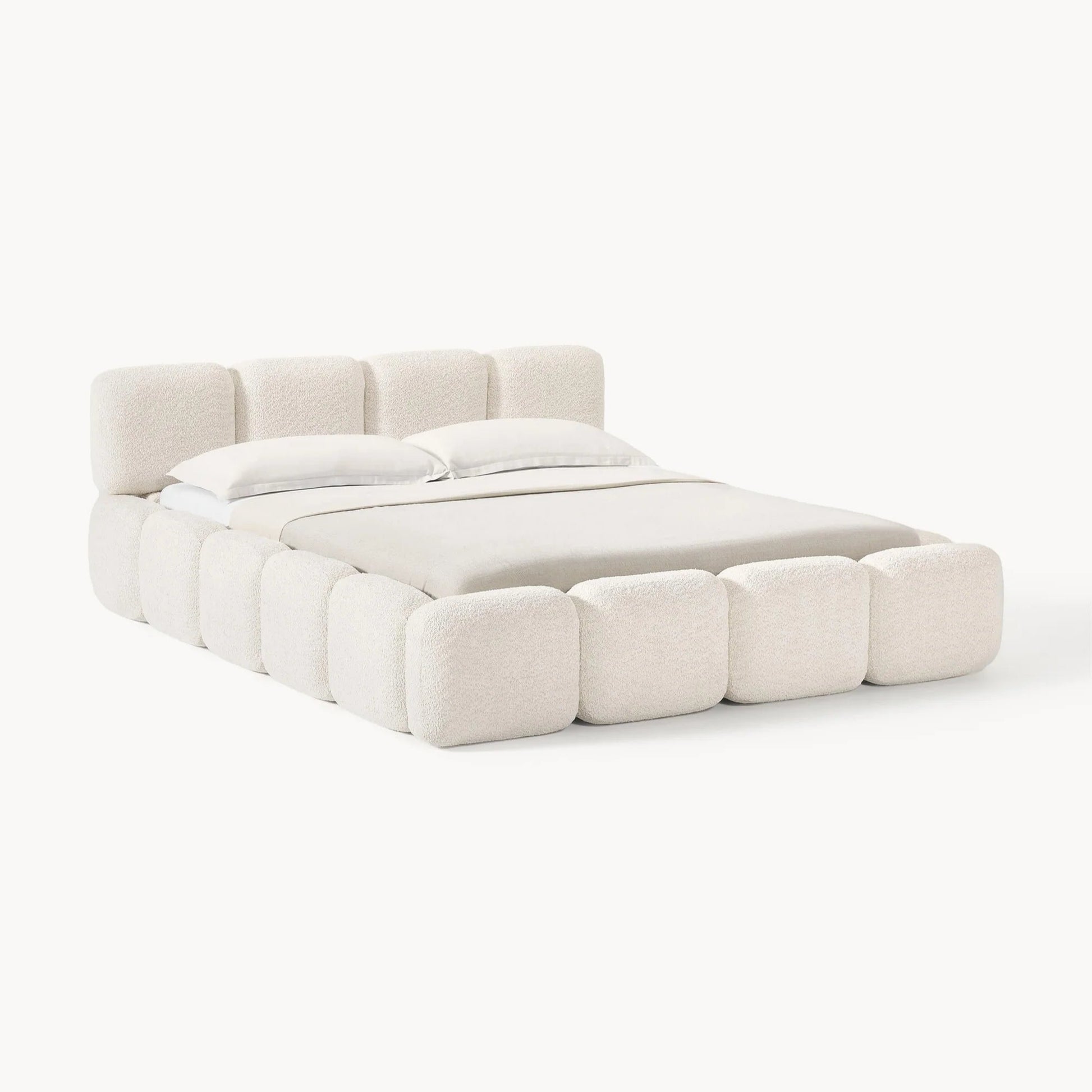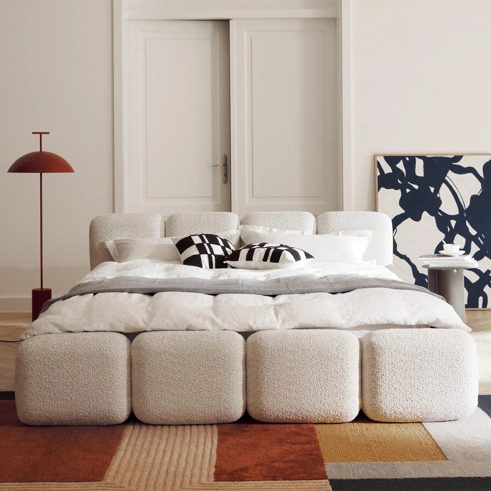 Le lit CLOUD réinvente la chambre à coucher avec son design matelassé unique et son revêtement en tissu bouclette doux et chaleureux.