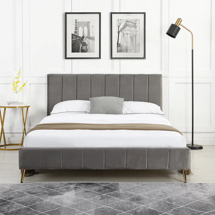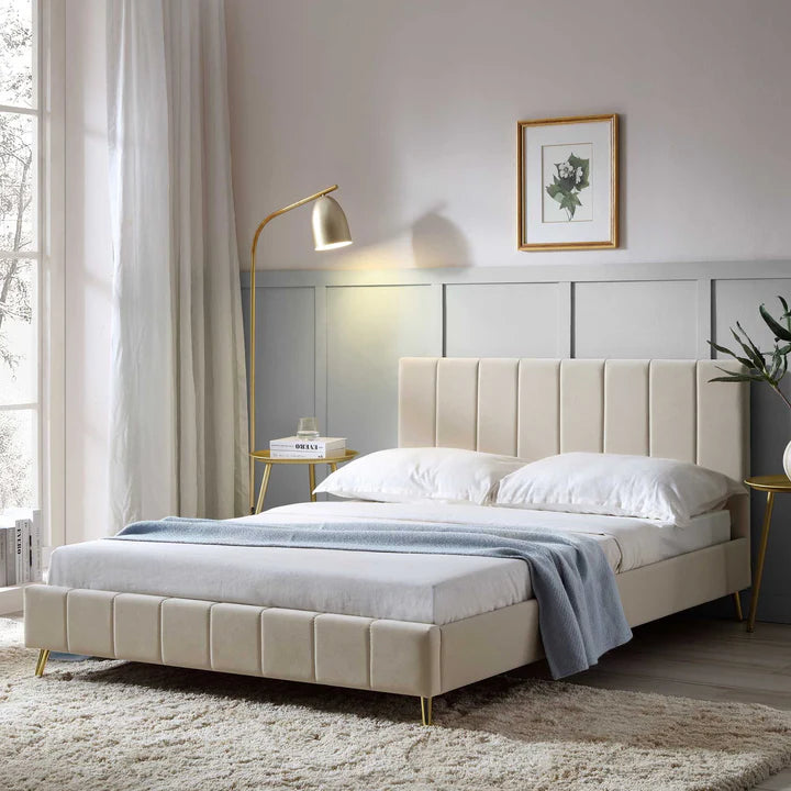 Ses pieds en chrome doré ajoutent une touche de luxe et de modernité, tandis que le design raffiné en fait une pièce maîtresse parfaite pour votre espace de sommeil.