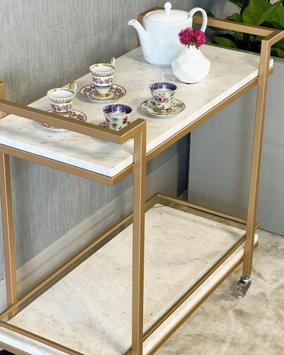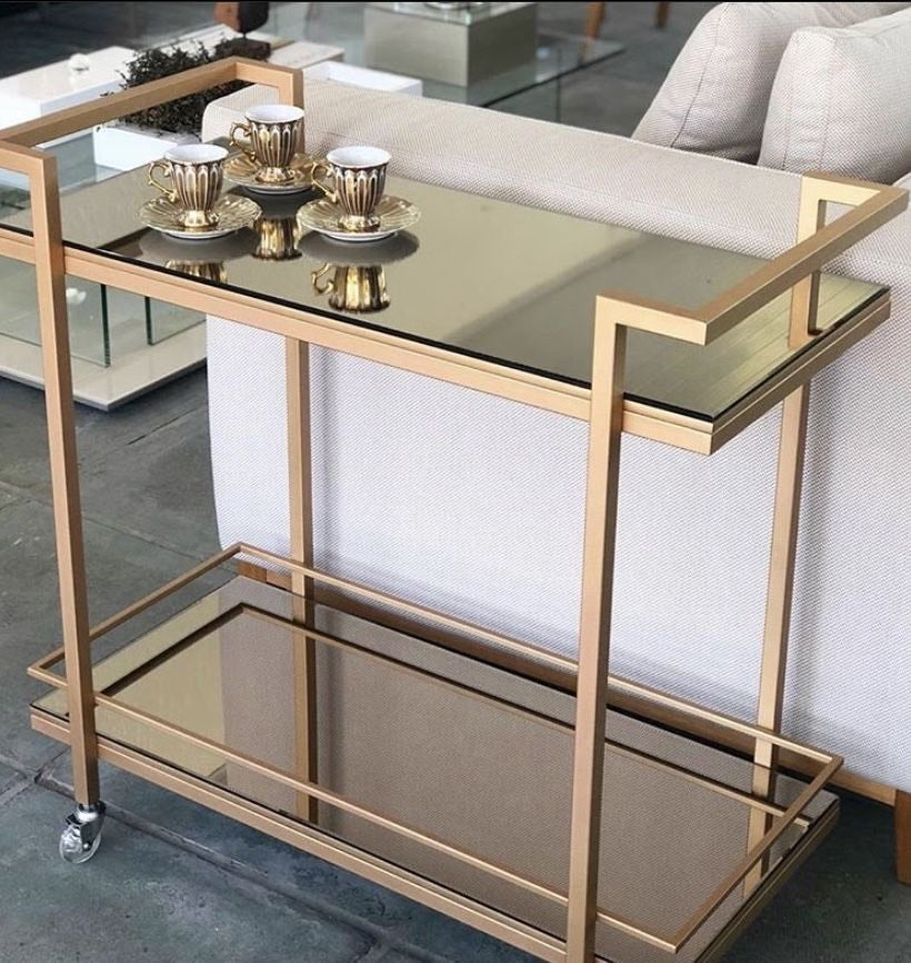 Ce chariot de bar est magnifique, avec son cadre en forme de rectangle unique, une finition antique, des étagères en effet marbre et des roues pivotantes attachées. Complément parfait à votre salon, à votre bar ou à votre utilisation comme bar à cigares. Des options infinies, un look polyvalent et beaucoup d'espace pour décorer avec votre propre motif.
