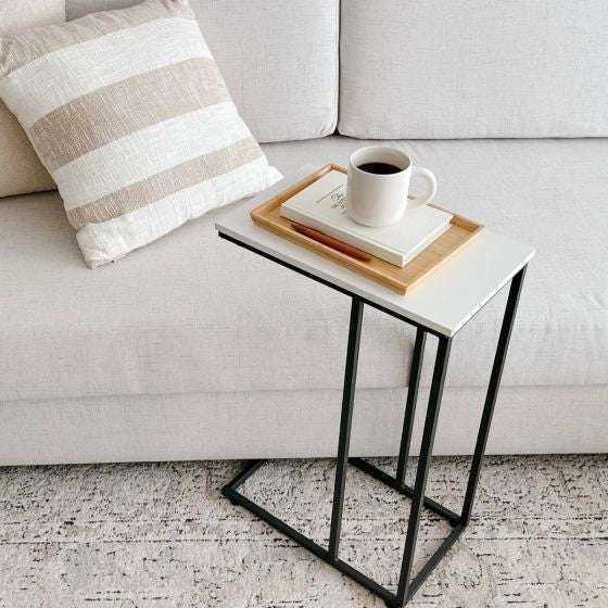 Cette table d'appoint en forme de C est la solution parfaite pour de la fonctionnalité et du style.