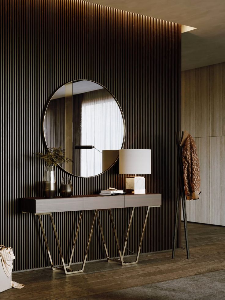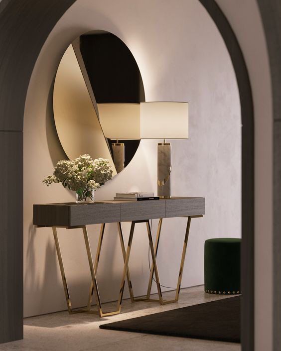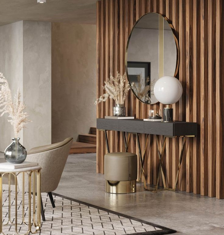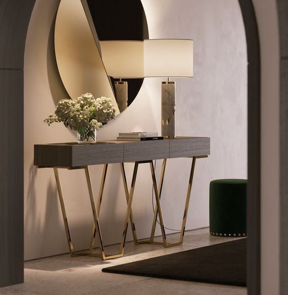 La console ZURIQUE est une pièce moderne qui joue avec les matériaux pour créer un design unique.